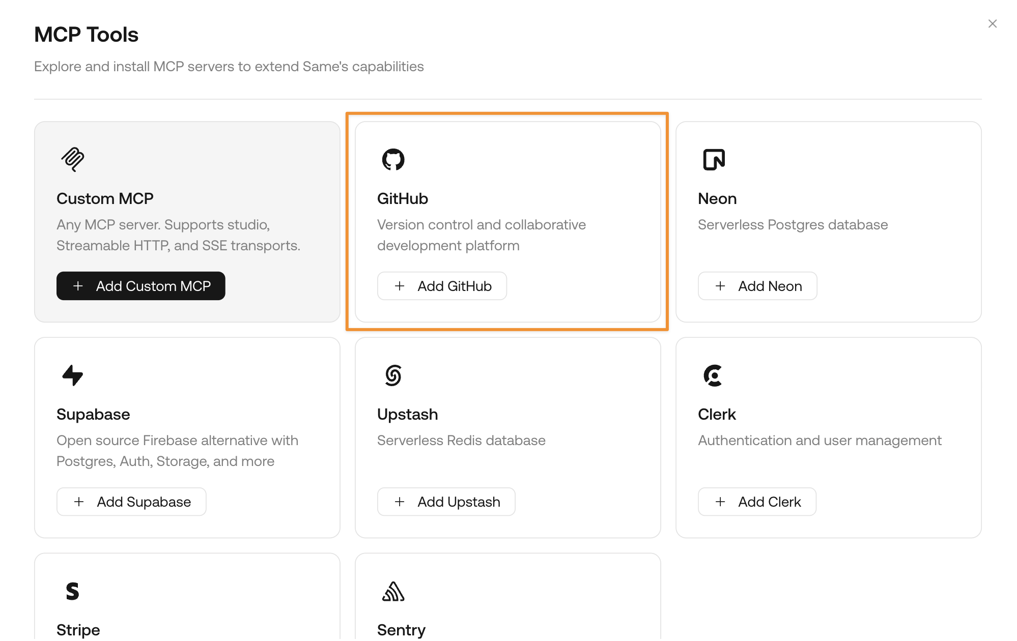 GitHub is a code hosting platform for version control and collaboration. It allows you to store your code, track changes, and work with others on projects. When you connect Same with GitHub, you can use natural language to:- Create and manage repositories for your projects