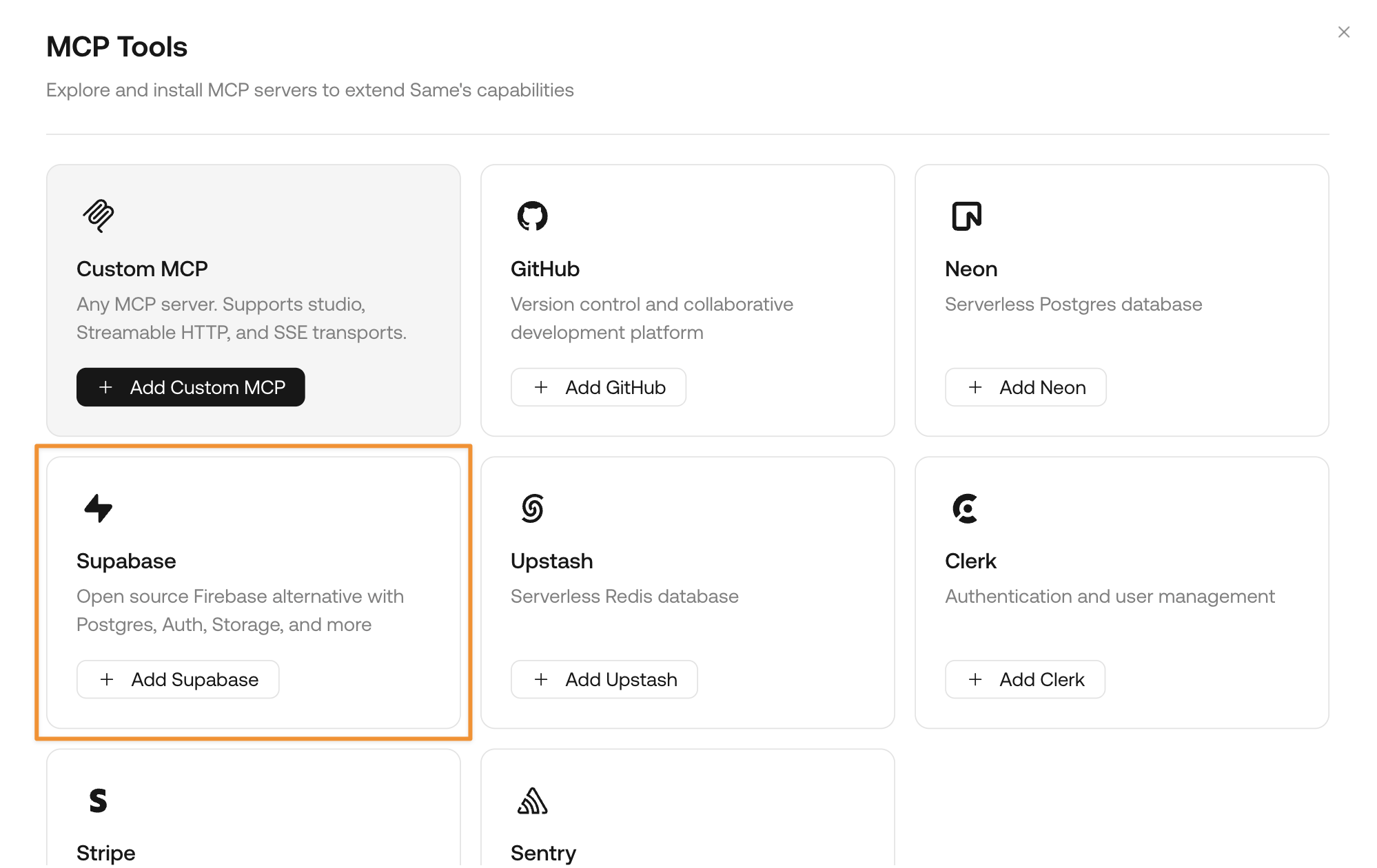Once the connection is successful, directly ask Same to:Same will automatically manage everything for you, from Supabase project creation and database schema design to final connection and migration.